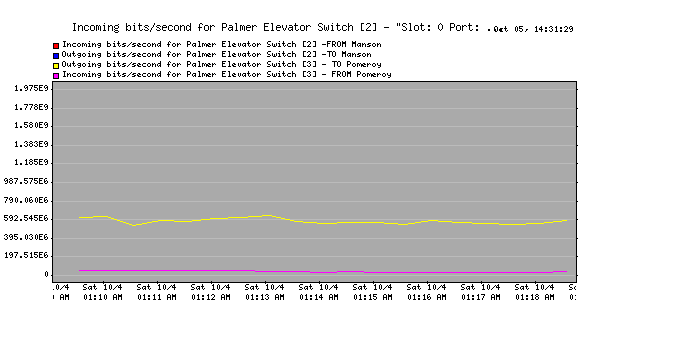 3. Chart: Incoming bits/second for Palmer Elevator Switch [2] - "Slot: 0 Port: 2 Gigabit - Level"