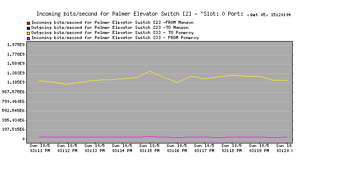 3. Chart: Incoming bits/second for Palmer Elevator Switch [2] - "Slot: 0 Port: 2 Gigabit - Level"